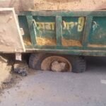 सड़क पर बड़ा हादसा होते-होते टल गया। मिट्टी से भरी एक ट्रैक्टर-ट्रॉली अचानक सड़क में धंस गई, जिससे मौके पर अफरा-तफरी मच गई।